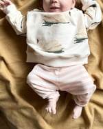Telma, un legging en jersey côtelé, écru et rose, est aussi joli que pratique.